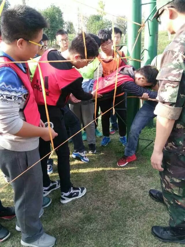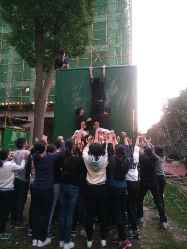 “信任背摔”让还不太相互熟悉的大家开始真正的能将后背交给队友了,仅仅一秒钟的摔倒过程,大家能感受到是对团队伙伴的信任以及伙伴间的彼此扶持。“高空断桥”让干事们克服了自己心灵上对高空的恐惧,有了突破自我的成功喜悦。“穿越电网”更让干事们体会到了分配与策划的重要。“寻找卡片”使干事们懂得了如何分配工作与相互的配合才能最高效快速的完成任务。最后一项“毕业墙”任务,高高的铁壁阻挡着干事们的视线,因为任务上的高难度,年轻的干事们频频犯错,一次一次的失败也让教官的惩罚愈加严厉。在干事们面对挫败和惩罚渐渐出现情绪低落的关键时刻,一旁观战的学长学姐们挺身而出为学弟学妹们扛起了所有的惩罚,两百个俯卧撑,一次又一次的力竭趴下,又一次又一次的继续撑起坚持。这种精神使得在场的干事们潸然泪下,也重振了他们的斗志,大家重新分工,在团队合作中一个又一个的翻越了这堵4.2米的高墙,当最后一名成员翻过时,大家齐声欢呼,掌声久久不息!
