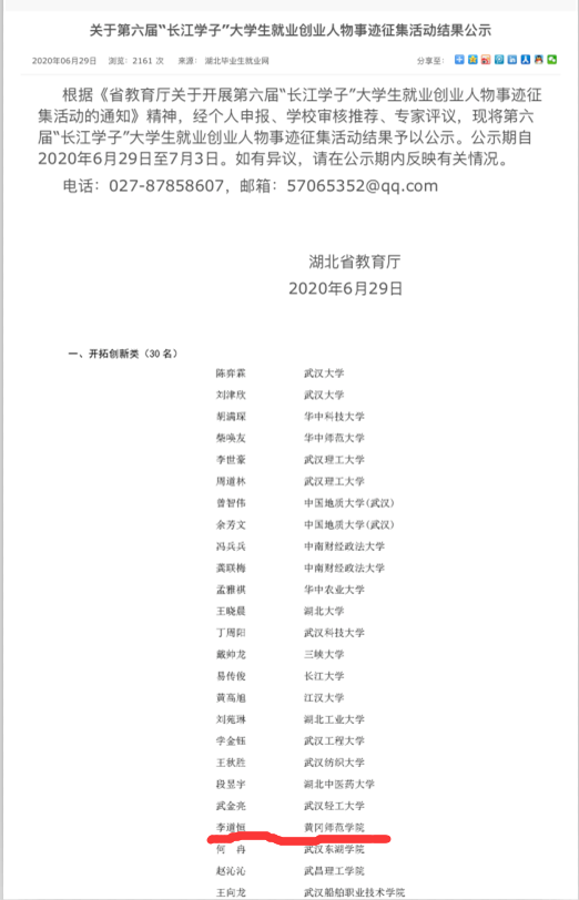 他是一个喜欢挑战自我的人,一步一个脚印地攀向更高峰。在校期间他响应国家的号召,也为了培养自己的创新能力,在结合所学知识和比赛经验的基础上开拓创新,他以队长的身份带领队员申请了大学生创新创业项目“全国2017版普通高中物理课程标准与2003版普通高中物理课程标准的比较研究”在2018年6月获得国家级立项。围绕着创新项目,他进行细致的调研,在图书馆夜以继日的查阅文献。最后在导师王小兰教授的指导下成功撰写出论文《2017版与2003版全国普通高中物理课程标准的比较研究》,并以第一作者的身份发表在了期刊《中学物理》(物理专业前核心期刊)上,及此国家级项目顺利结题。同年他总结项目研究中的要点再次完成了论文《2017版全国普通高中物理课程标准的解读》并以第一作者的身份发表在期刊《课程教育研究》上,论文已于知网收录,被下载六百余次。后面他还与班级同学向倩合作撰写了论文《基于“创客教育”理念黄冈市农村中学物理实验研究与思考》并发表在期刊《中学物理》(物理专业前核心期刊)上。与研究生学长合作撰写了论文《平行板电容器中两类典型问题的解析》发表在期刊《课程教育研究》上。