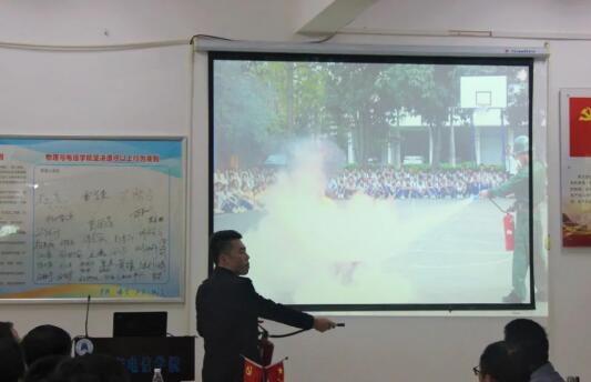 首先,陈教官结合重大火灾案例,就火灾危险性、火灾的预防与扑救、火场疏散、灭火器材的种类和使用、火灾逃生和自救等方面知识进行了形象生动地讲解。陈教官以火灾事故为切入点,通过一张张触目惊心的图片,对火灾发生的人为因素和工作隐患等原因作了深入分析,对“血的教训”警示大家要高度重视消防安全。还结合实际生活中的真实案例,详细介绍了日常生活中极易忽视的火灾隐患、各阶段扑救措施等知识。