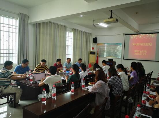 6月15日上午,我院在物电楼205会议室举行了以“毕业离别感言、 情系学院发展”为主题的师生座谈会。莅临本次座谈会的领导和老师有党总支书记杜杰老师、院长兰智高老师、党总支副书记刘智能老师、副院长丁如春老师、副院长徐火希老师、辅导员江俊新老师、辅导员金玲老师、辅导员陶静老师和2021届毕业生代表。本次座谈会由党总支副书记刘智能老师主持。