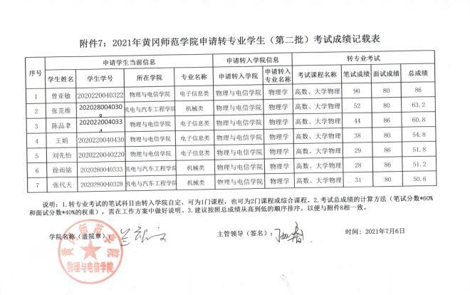 2021年伟德victor1946申请转专业学生(第二批)考试成绩公示
