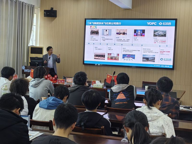 仪式结束后,朱继红教授应邀为我校师生做了题为“创新引领未来:高纯石英材料的突破与展望”的学术报告。报告结束后,朱继红教授就有关光电功能材料前沿技术、光电子信息行业人才培养需求与在场师生进行了交流。