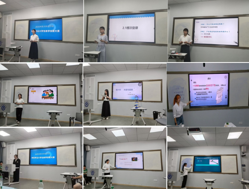 当天下午2点,比赛正式开始。比赛包括即兴演讲和模拟授课两个环节,其中模拟授课采用自选题(高中物理)的方式。在比赛中,选手们凭借扎实的专业知识、创新的教学理念和卓越的教学技巧,通过精心设计的教学环节、生动的讲解和巧妙的实验演示,将复杂的物理知识通俗易懂地传授给“学生”,充分展示了出色的教育教学能力。